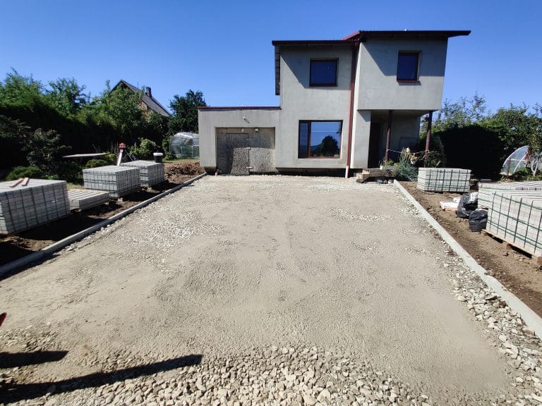 Iškastas lovys, įrengti smėlio-žvyro ir skaldos pagrindų sluoksniai, sudėti betoniniai vejos bordiūrai ir paklotos trinkelės. Perteklinis gruntas panaudotas…
