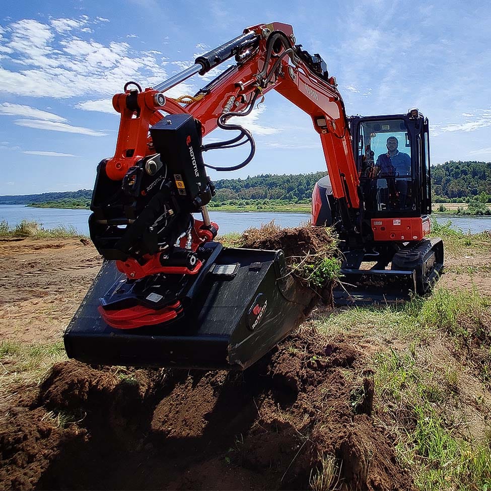 Naudojame 2022 m. „Kubota“ ekskavatorių su „Rototilt“ priedu, leidžiančiu dirbti net sudėtingiausiomis sąlygomis.