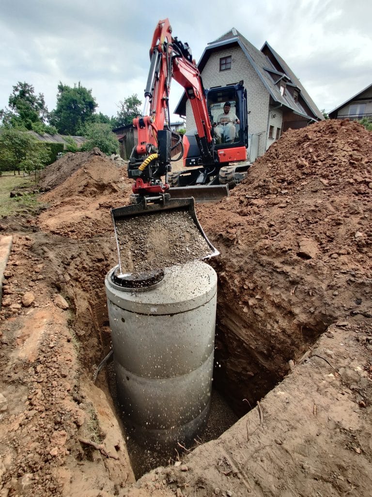 Pagal pateiktas užduotis įrengti lietaus kanalizacijos, buitinių nuotekų, vandentiekio ir elektros tinklai