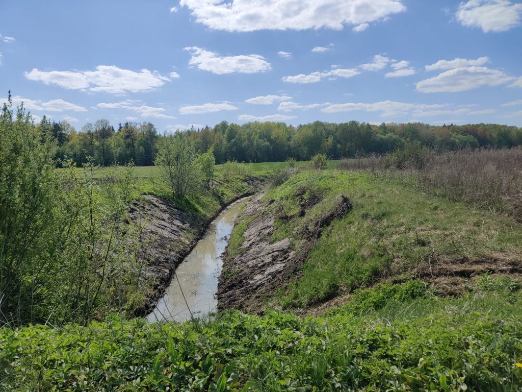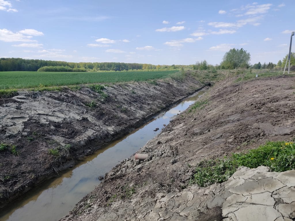 Atlikta krūmais bei smulkiais medeliais apaugusio griovio valymo darbai, pašalintos susikaupusios sąnašos iš dugno, dailiau suformuoti šlaitai.